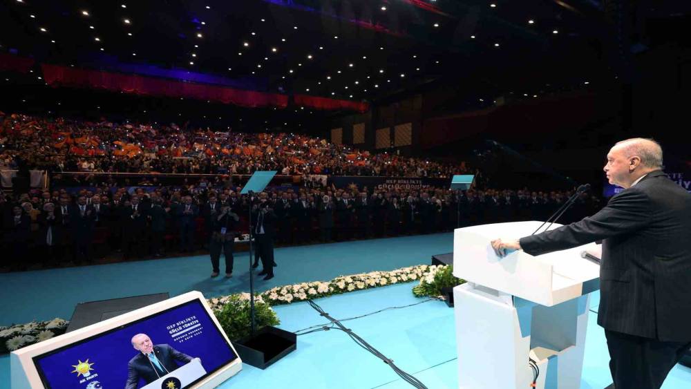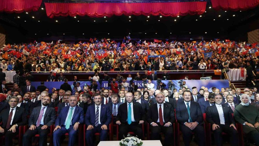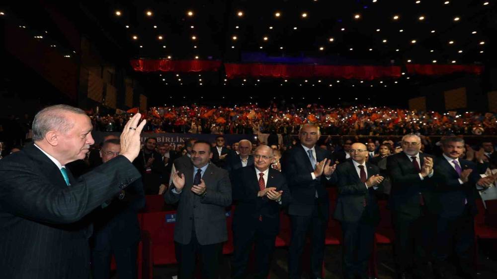 Partisi ve ülkesi için cansiperane bir ruhla çalışan siz değerli kardeşlerimle milletimizin emrinde olmayı sürdüreceklerini belirten Cumhurbaşkanı Erdoğan, "Dün milletimizin hasretle beklediği bir müjdeyi daha paylaştık. Başakşehir’de Yüzyılın Konut Projesi’nin tanıtımı gerçekleştirdik. 500 bin sosyal konut seferberliğimizi başlatmanın gururunu yaşadık. Bunlardan 100 binini inşallah İstanbul’da inşa edeceğiz. Ayrıca İstanbul’da 15 bin adet kiralık konut projesini hayata geçireceğiz. 2. Dünya Savaşı’ndan sonra galipler eliyle kurulan sistemin kökünden sarsıldığı sancılı bir dönemden geçiyoruz. Sıcak çatışma ve savaşlar, çevremiz başta olmak üzere dünyanın pek çok bölgesini doğrudan etkiliyor. Ticaret, teknoloji, ve enerjide yaşanan rekabet, askeri ve siyasi güç mücadelesini yeni ve zorlayıcı bir evreye taşıdı. İstikrarsızlık dalgasının halka halka yayıldığı bu dönemde, hamdolsun hem içerde hem de sınırlarımız ötesinde yaptığımız hamlelerle Türkiye’yi tüm bu tehlikelerden uzak tutmayı başardık. Bizi çatışmaların tarafı yapmak için pek çok oyun oynandı. Muhalefetteki aparatlarını da kullanarak her yolu denediler. Türkiye ‘batı ittifakından uzaklaşıyor’ dediler. ‘Türkiye’nin ekseni doğuya kayıyor’ dediler. ‘Türkiye oyun dışına itiliyor’ dediler. Bütün iddia, tez ve öngörülerinde duvara tosladılar. Sonuçta haklı çıkan doğru yerde durduğu anlaşılan biz olduk" ifadelerini kullandı.