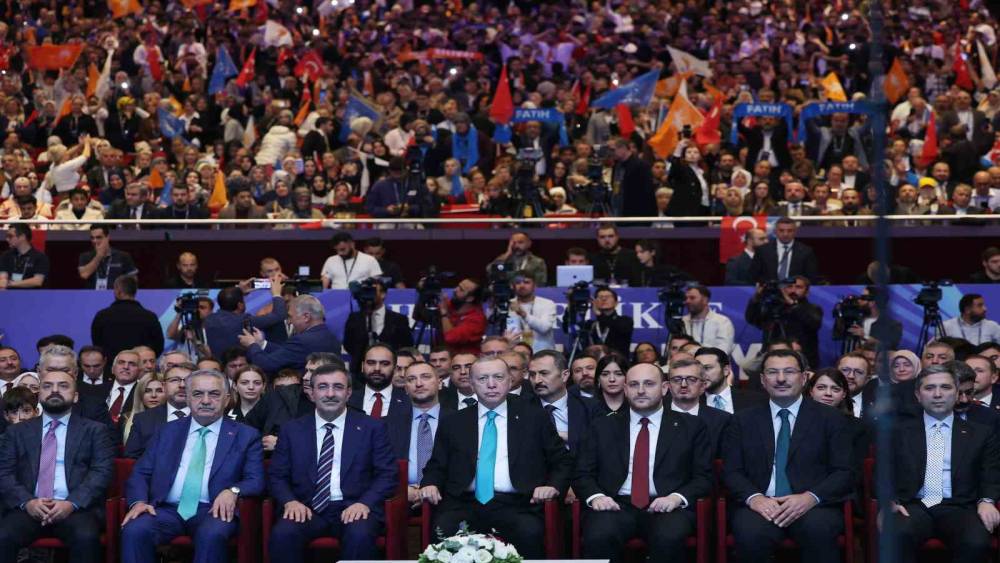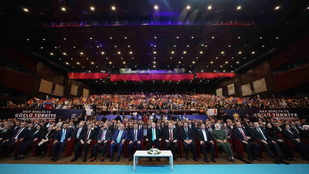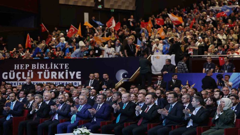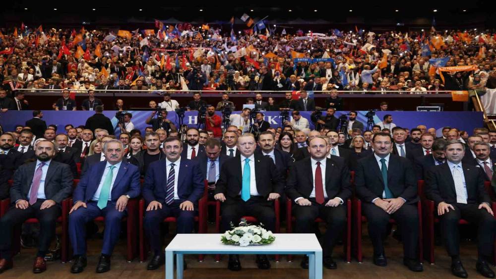 ‘Halk için halka rağmen’ diyen jakobenleri kerameti kendinden menkul muhterisleri semtimize uğratmadıklarını ifade eden Cumhurbaşkanı Erdoğan, "2053’ü, 2071’i hedefleyenler mevzi kazanımlarını değil, uzun soluklu ve inşallah kalıcı zaferlere odaklananlar işte bu salondadır. Burası şahsi istikbal peşinde koşanların değil, millete hizmet için koşanların , bu yolda canını dişine takanların yuvasıdır. Gençler memlekete nasıl daha fazla katkı yapabilirim, Türkiye’nin geleceğini nasıl inşa edebilirim diyenler işte bu çatının altındadır. Bugüne kadar ne yaptıysak milletimiz için yaptık, ‘halk için halka rağmen’ diyen jakobenleri kerameti kendinden menkul muhterisleri semtimize uğratmadık. Milletin rotasından başka merciler edilenler bu partinin ve bu hareketin içinde yaşama şansı bulamadılar. Kalbinde, ruhunda, zihninde, milletin rehberliği konusunda en küçük bir tereddüt yaşayanlar bu harekete ayak uyduramadılar. İddiayla, tüm samimiyetimle söylüyorum, AK Parti Türkiye’de kurumsal teşkilatlanmayı adeta icat eden bir partidir. Bizim siyasetteki en büyük güç ve güven kaynağımız teşkilatlarımızdır. Bu vefakar teşkilattaki yorgunluk, bıkkınlık ve yıpranmayı göremezsiniz. İlk günkü kadar heyecanlıyız. İlk günkü kadar coşkuluyuz. Ülkemize ve davamıza hizmet noktasında ilk günkü kadar azimliyiz. Birlik içinde, beraberlik içinde, kardeşlik hukuku çerçevesinde kendimizi daima yenileyerek, bünyemizi güçlendirerek, varsa hatamız, eksiğimiz, yanlışımız bunları gidererek, ‘durmak yok, yola devam’ diyoruz. Sizlere ve tüm teşkilatıma şunu da hatırlatmak durumundayım; Millete hizmette dargınlık, küskünlük, kırılma yoktur. Bu davaya hizmette ümitsizliğe kapılmaya asla ve asla yer yoktur. Biz bundan 24 sene önce yola çıkarken, unutmayın bu yolun uzun olduğunu, meşakkatli olduğunu, önümüze engeller çıkacağını biliyorduk. Ama buna rağmen millete hizmet mücadelesinde geri durmadık. Bize inanan, güvenen, geleceğini AK Parti’nin emin kadrolarına emanet eden milletimize mahcup olmamak için ne gerekiyorsa yapacağız dedik, yaptık ve yapıyoruz" dedi.