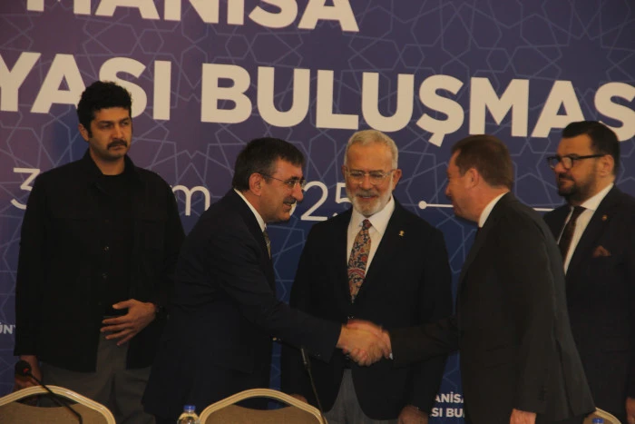 Cumhurbaşkanı Yardımcısı Cevdet Yılmaz, Manisa'da iş dünyasının temsilcileriyle buluştu. Cumhurbaşkanlığı Genel Sekreteri Hakkı Susmaz, Manisa Valisi Vahdettin Özkan, AK Parti Grup Başkanvekili ve Manisa Milletvekili Bahadır Yenişehirlioğlu, AK Parti Manisa milletvekilleri Mücahit Arınç, Murat Baybatur, Tamer Akkal, Manisa Ticaret ve Sanayi Odası Başkanı Mehmet Yılmaz, sanayiciler ve iş adamları katıldı.