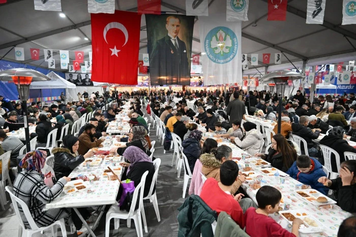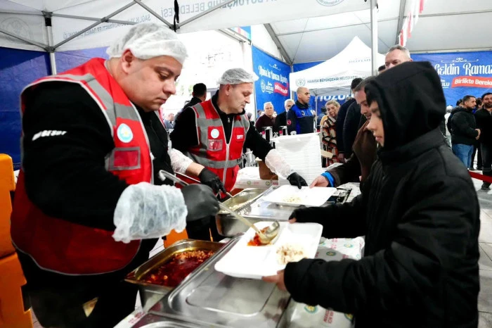 Manisa’da Ramazan bereketi kentin merkezinde başladı. Manisa Büyükşehir Belediyesi tarafından organize edilen ilk iftar programı, Cumhuriyet Meydanı’nda yoğun bir katılımla gerçekleştirildi. Meydanda kurulan masaları tek tek gezerek vatandaşlarla selamlaşan Büyükşehir Belediye Başkanı Besim Dutlulu, sosyal belediyecilik vurgusu yaparak, “Kimsenin kendini yalnız hissetmediği bir Manisa inşa ediyoruz” dedi.