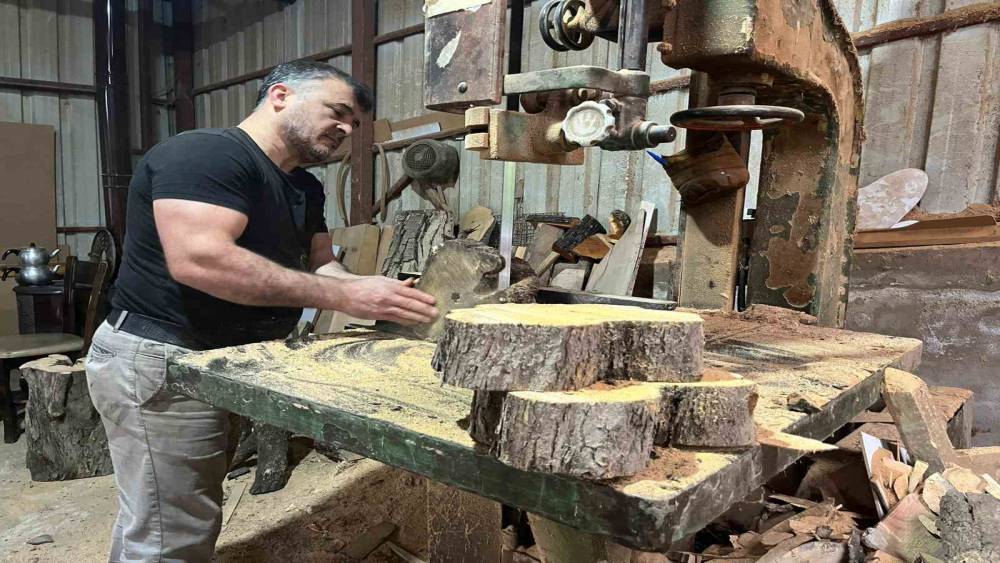 Antalya’nın Alanya ilçesinde Hilmi Özen, marangozluk mesleğini ahşap sanatına dönüştürerek çürümeye yüz tutmuş zeytin ağaçlarını sanat eserine dönüştürüyor. Özen, bir evin altında kurduğu küçük atölyede zeytin ağaçlarını el emeği ürünler haline getiriyor.