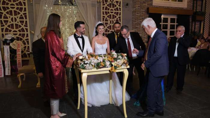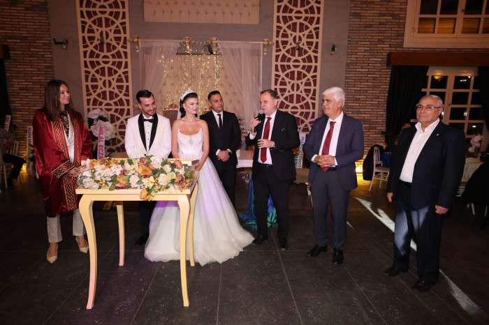 Manisa Seyyar Tuhafiyeci ve Manifaturacılar Esnaf Odası Başkanı Mesut Dalkara'nın oğlu Mert Dalkara, Kurtuldu Ailesi'nin kızı Buse Kurtuldu ile geçtiğimiz günlerde hayatını birleştirdi. Şehzadeler Belediye Başkanı Gülşah Durbay, Mert ve Buse çiftinin nikahını kıydı.