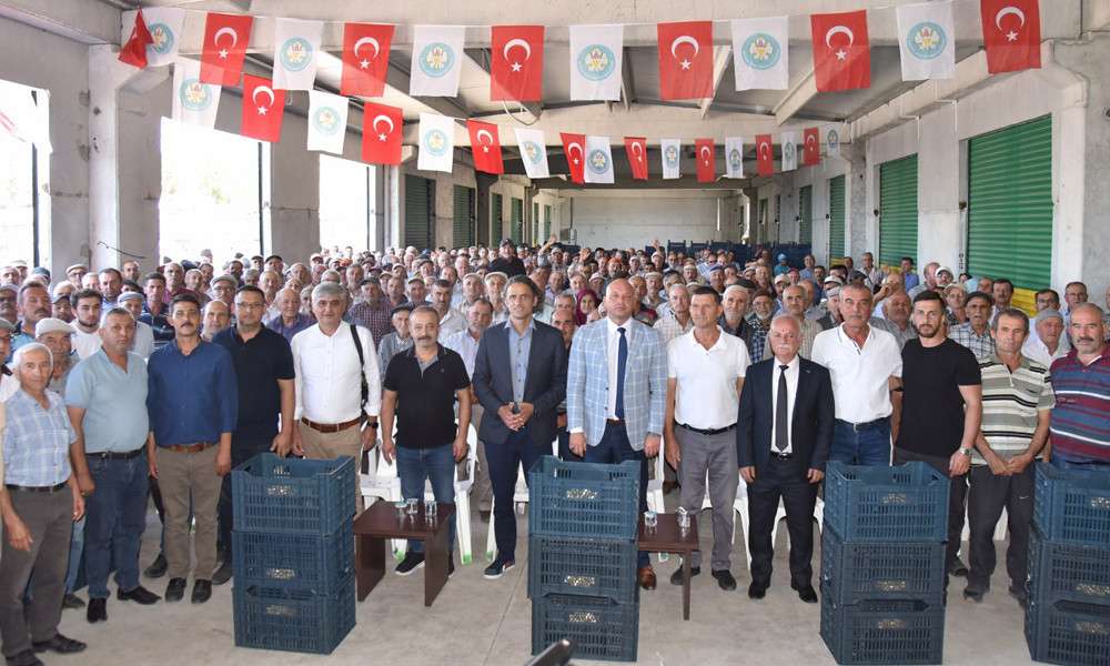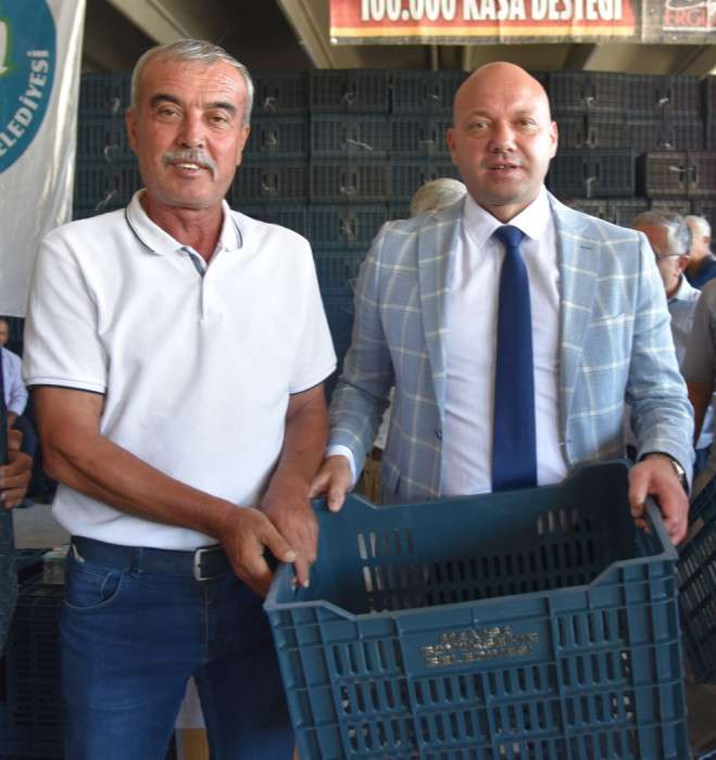 Manisa Büyükşehir Belediyesi Genel Sekreter Yardımcısı Ali Öztozlu’nun konuşmasının ardından Demircili 1600 meyve üreticisine 10’ar adet yüzde 100 hibeli meyve kasaları dağıtıldı. Haber Merkezi