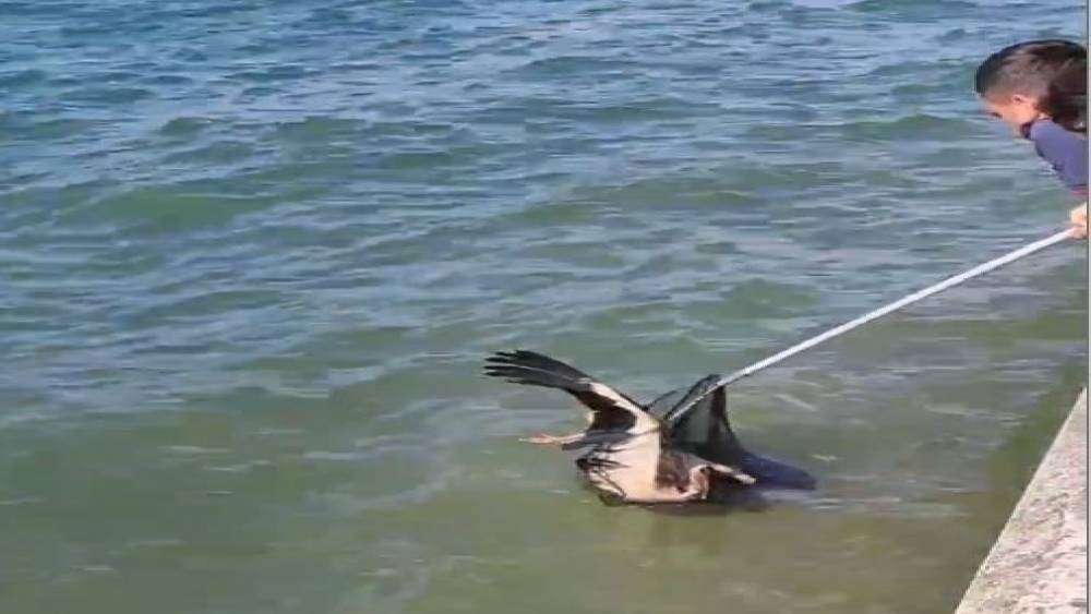 Denize düşen yaralı leyleğin yardımına itfaiye yetişti