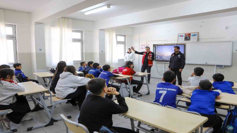 Tatbikat uygulamasından önce lise öğrencilerine, başta deprem olmak üzere afet durumlarında neler yapılması gerektiğine ilişkin üç ayrı ekip tarafından üç farklı sınıfta bilgilendirme yapıldı. Ekiplerin, 6 Şubat 2023’te merkez üssü Kahramanmaraş’ın Pazarcık ve Elbistan ilçeleri olan depremde yaşadıkları deneyimleri de aktardığı eğitimde öğrenciler, afetlerle ilgili merak ettikleri soruları sorma fırsatı buldu.