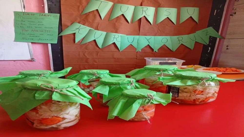 Etkinlik kapsamında öğrenciler; salatalık, lahana ve havuç gibi sebzeleri tanırken, temizlik ve hazırlık sürecine de aktif olarak katıldı. Kavanozlara doldurulan sebzelerle turşu kuran minikler, paylaşmanın ve birlikte üretmenin mutluluğunu yaşadı.