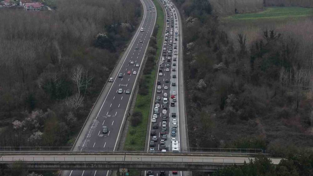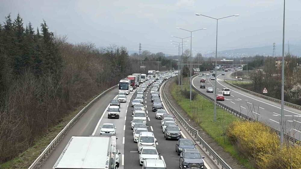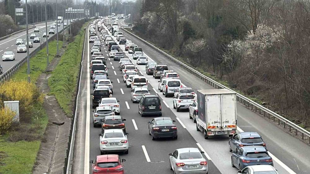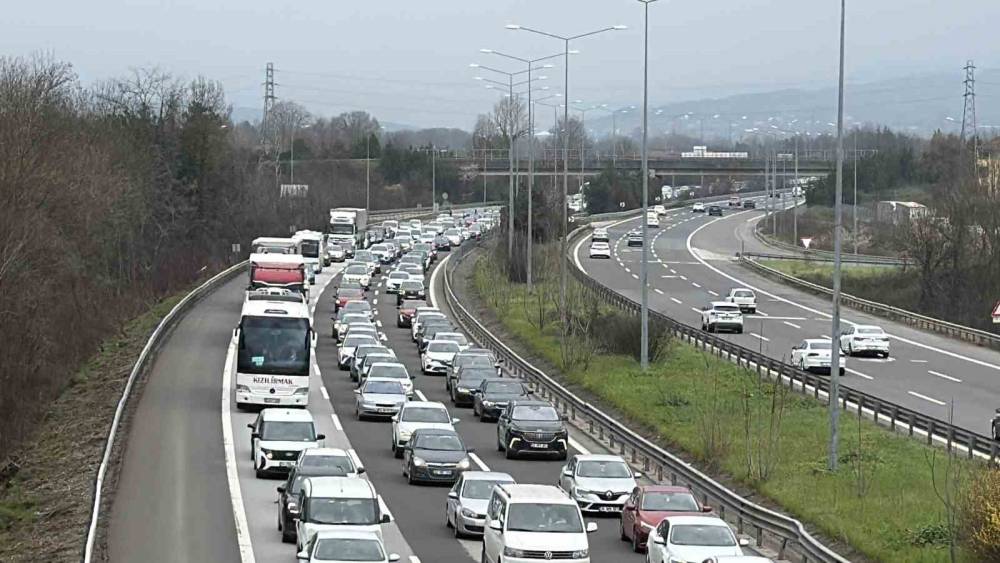 Ramazan Bayramı tatilinin sona ermesiyle birlikte Anadolu Otoyolu’nun Düzce geçişinde dönüş yoğunluğu etkisini artırdı.Bayram dönüşü Düzce’de yoğunluk oluşturdu. İstanbul istikametine seyreden araçların oluşturduğu yoğunluk nedeniyle trafik zaman zaman durma noktasına gelirken, araç hızları yer yer saatte 20 kilometreye kadar düştü.Özellikle Gümüşova ile Kaynaşlı arasındaki güzergahta yoğunluk giderek artarken, bazı noktalarda meydana gelen yaralamalı ve maddi hasarlı trafik kazaları ulaşımı olumsuz etkiledi. Kazalar nedeniyle trafik akışı sık sık kesintiye uğrarken, uzun araç kuyrukları oluştu. Yoğunluktan kaçmak isteyen bazı sürücülerin D-100 kara yoluna yönelmesi ise şehir içi trafiğini de artırdı. Düzce kent merkezinde de araç yoğunluğu gözle görülür şekilde yükselirken, ana arterlerde zaman zaman aksamalar yaşandı.Öte yandan, Anadolu Otoyolu’nun Ankara istikametinde ise trafik akışının normal seyrinde devam ettiği bildirildi. Yetkililer, sürücülere trafik kurallarına uymaları, takip mesafesini korumaları ve dikkatli olmaları yönünde uyarılarda bulundu.