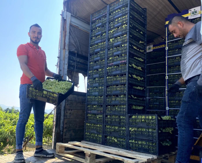 Manisa'nın coğrafi işaretli dünyaca ünlü çekirdeksiz sofralık Sultaniye üzümünde 3 Ağustos'ta başlayan hasat devam ederken, 2025 yılının ilk ürünlerinin de ihracatı başladı. Bağlardan özenle kesilen üzüm salkımları kasalara yerleştirilerek yüklendikleri tırlarla ihracat yoluna çıktı.