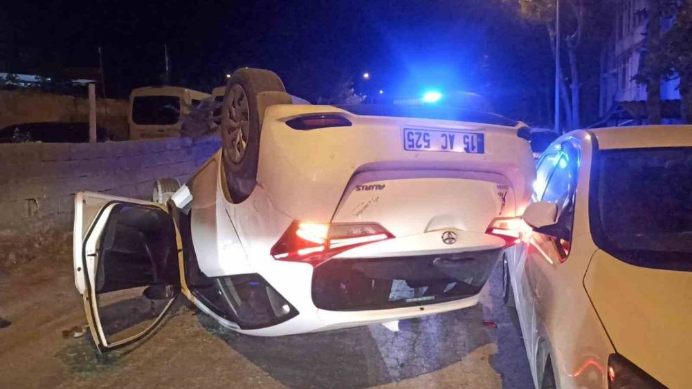 Burdur’da duvara ve başka bir araca çarpıp takla atan otomobilden kendi imkanlarıyla çıkan sürücü olay yerinden kaçtı.