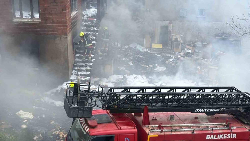 Balıkesir’in Edremit ilçesinde çöp ve hurda malzemeleriyle dolu evde çıkan yangın paniğe neden oldu. Yoğun duman ve yanıcı maddelerden çıkan gaz nedeniyle ekipler müdahale etmekte zorlanırken, yangın uzun uğraşlar sonucu kontrol altına alındı.