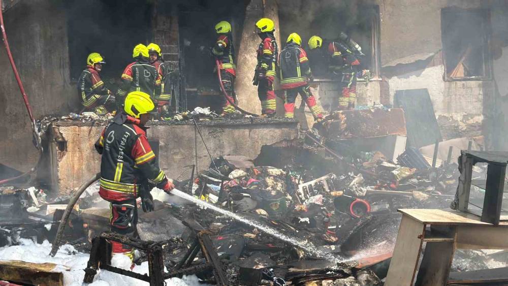 Edinilen bilgiye göre, İbrahimce Mahallesi, Ömer Seyfettin Caddesi üzerindeki iki katlı bir evde henüz belirlenemeyen bir nedenle yangın çıktı. İçerisinde hurda kağıt, plastik ve çöp biriktirildiği öğrenilen evden yükselen alevler, kısa sürede tüm binayı sardı.
