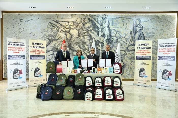 Valilik Fuaye Alanı’nda imzalanan protokolle birlikte Kahramanmaraş merkezli depremlerden ağır hasar alan Nurdağı ve İslahiye’de bulunan öğrencilerin tamamına eğitimlerine destek olmak amacıyla okul kıyafetleri ve kırtasiye malzemelerini Büyükşehir Belediyesi verecek. Gaziantep il genelinde ise bütün birinci sınıf öğrencilerinin bu yılda kırtasiye malzemeleri ve çantaları 11 Eylül’de sıralarında olacak.