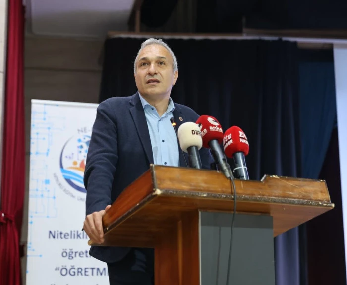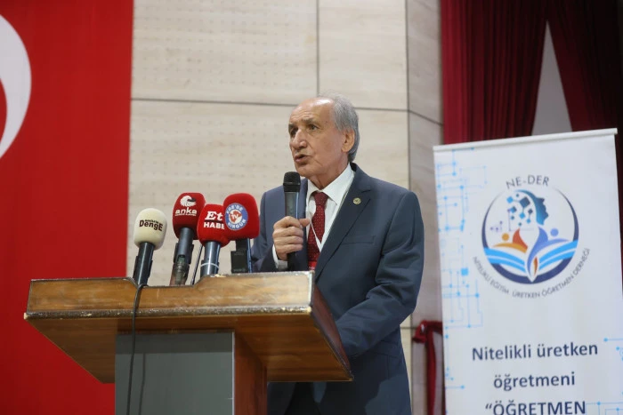 Başkan Dutlulu, "Cumhuriyetin en önemli kazanımlarından bir tanesi eğitimde fırsat eşitliğidir. Hangi sosyal statüden gelirse gelsin, ailesi zengin olsun fakir olsun, hangi siyasi görüşe sahip olursa olsun bu ülkede herkes fırsat eşitliğiyle çalışarak, mücadele ederek eğitimle iyi bir noktaya gelebiliyordu. Maalesef, bu 20 yılda fırsat eşitliğini kaybettik. Geleceğe dair hayallerin çok azaldığı, insanların çocuklarını yurt dışında okutmaya çalıştığı, yurt dışına göndermek çalıştığı bir ülke hâline geldik. Bence her şey düzelir. Sağlık, adalet düzelir ama en çok zorlanacağımız konulardan biri eğitim. Artık o kadar kötü bir noktaya geldik ki eğitim bir devrim yapma zamanı geldi. Bundan otuz, kırk, elli yıl önce belki bu fiziksel şartlar yoktu ama eğitim bugünkünden çok daha iyi noktaydı. Bu yüzden Ne-Der’in yaklaşımı çok doğru. Nitelikli, üretken öğretmen ve öğretmen üniversitesi. Bu iş öğretmen olmadan olmaz. Bu iş öğretmenlerin hayat standartlarını yükseltmekle, ekonomik rahatlık sağlamakla, meslek içi eğitimle, bir çocuğun psikolojisini, öğretmenin psikolojisini anlayarak; okul psikolojisini anlayarak yürütmekle olur. Bu yüzden öğretmen niteliğini artırmak, nitelikli öğretmene ulaşmak çok önemli. Öğretmen Üniversitesi çok güzel, devrimci bir proje. Öğretmen Üniversitesi uzun vadeli doğru bir model olarak gözüküyor" dedi.