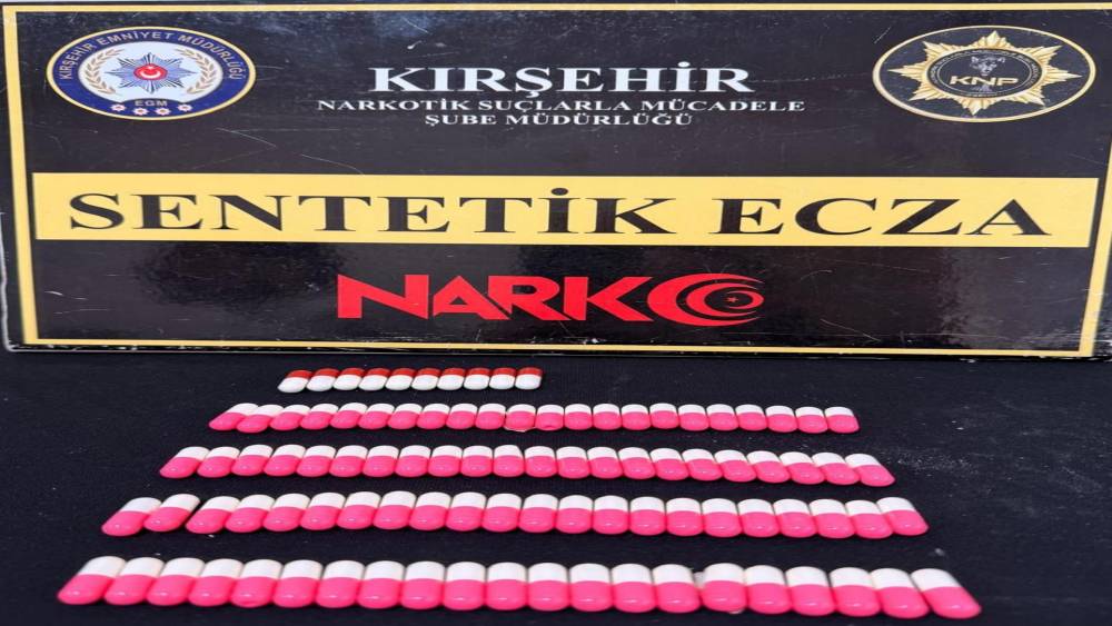 Kırşehir’de polis ekipleri tarafından yapılan çalışmalarda bir şahsın üzerinde şüphe üzerine yapılan aramada 97 adet sentetik hap bulundu.