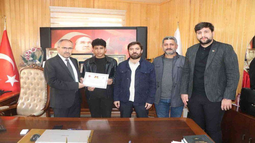 İstanbul’da yapılan hafızlık yarışması Türkiye finaline katılan ve dördüncü olan Altınçevre Yatılı Erkek Kur’an Kursu öğrencisi Nuh Eren Soğanlı, Elazığ İl Müftülüğünü ziyaret etti.