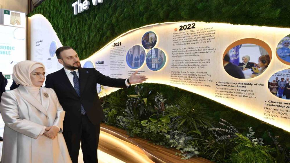 2022 yılında Birleşmiş Milletler (BM) Genel Sekreteri Antonio Guterres ile "İyi Niyet Beyanı"nı imzalayarak, küresel bir hareket başlattıklarını hatırlatan Erdoğan, BM Genel Kuruluna sundukları sıfır atık konulu kararın 105 ülkenin eş sunuculuğunda güçlü bir oybirliğiyle kabul edildiğini ifade etti. Ülkelerin bu mutabakatının insanlık ailesinin çevre meselesindeki dayanışma ruhunu ortaya koyan çok anlamlı bir örnek olduğunu vurgulayan Emine Erdoğan, "Bu karar neticesinde 30 Mart tüm dünyada Uluslararası Sıfır Atık Günü ilan edilirken, Birleşmiş Milletler Genel Sekreterinin ve şahsımın başkanlığında Birleşmiş Milletler Sıfır Atık Danışma Kurulu kuruldu. 2023’den bu yana Danışma Kurulumuzla dünyadaki en iyi sıfır atık uygulamalarını öne çıkarmak, uygulamayı yaygınlaştırmak ve farkındalığı artırmak misyonuyla çalışıyoruz. Ne mutlu ki biz bu yola çok kilometre ekledik" diye konuştu.