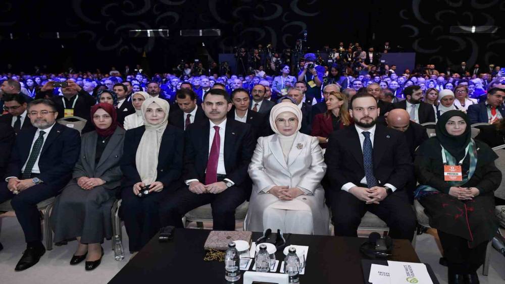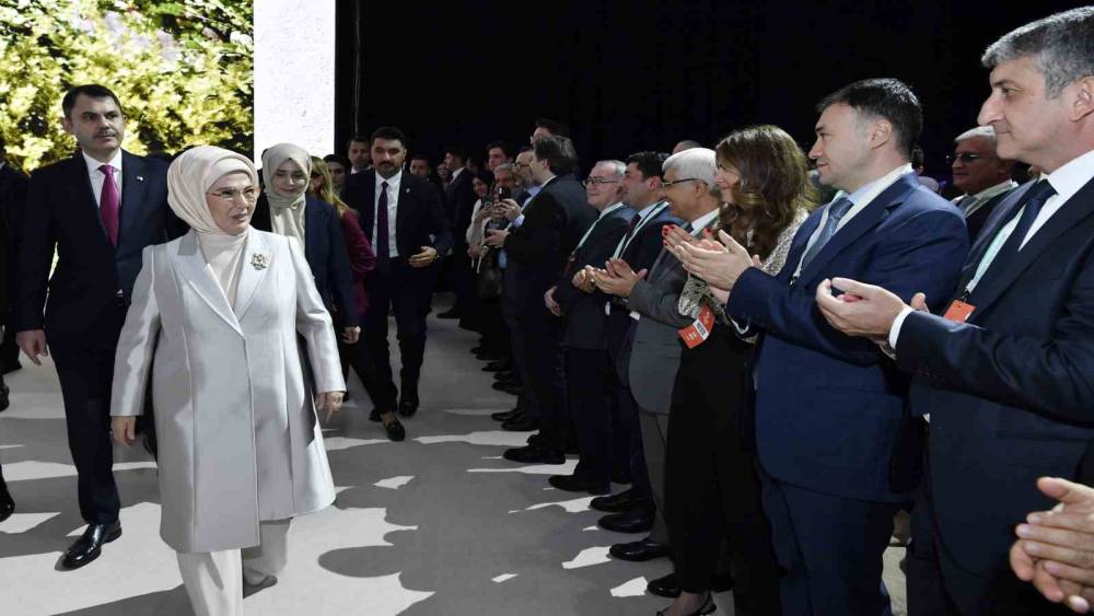 Emine Erdoğan, "Meşhur bir sözde şöyle denir, ‘Dünyada görmek istediğiniz değişimin kendisi olun.’ Ne var ki insanlık, bu yüzyıla geldiğinde değişimin değil, değiştirmesi gereken şeylerin kendisi oldu. Döngüsel tüketim modellerine geçmek yerine tüketim toplumlarına dönüştü. Geride bıraktığı atıklarla yeryüzüne çöpten dağlar, okyanuslara plastikten adalar ekledi. Kendi eliyle sahte ihtiyaçlardan ve yapay mutluluklardan örülü bir dünya kurdu. ‘Düşünüyorum, öyleyse varım’ dediği yerden ‘Tüketiyorum, öyleyse varım’ noktasına savruldu" diye konuştu.