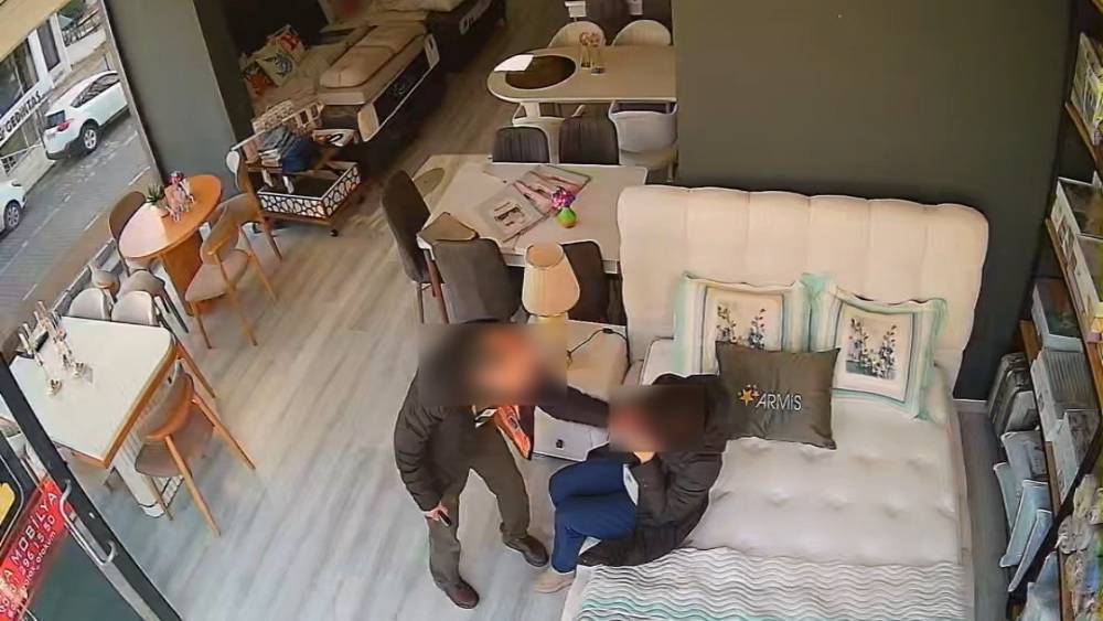 Eşini mobilya mağazasında darbetti: O anlar kamerada