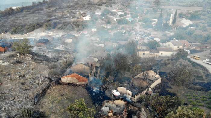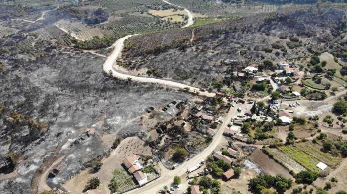 Manisa’nın Saruhanlı ilçesinde çıkan orman yangında durum iyiye giderken, yangında evleri ve hayvanları yanan köylülerin tek tesellisi can kaybının olmaması. Öte yandan, Sarısığırlı Mahallesi’nde yangından zarar gören evler havadan görüntülendi.