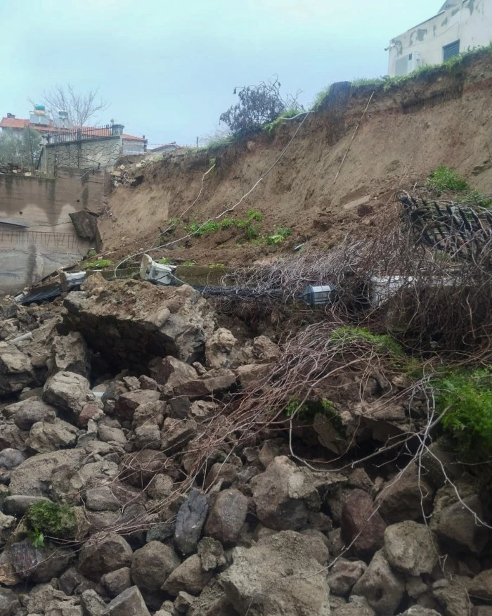 Edinilen bilgiye göre gece saatlerinden bu yana süren sağanak yağış sonrası toprağın ağırlığına dayanamayan okulun 8 metrelik istinat duvarı sabah 10.00 sıralarında okulun bahçe kısmına doğru yıkıldı.