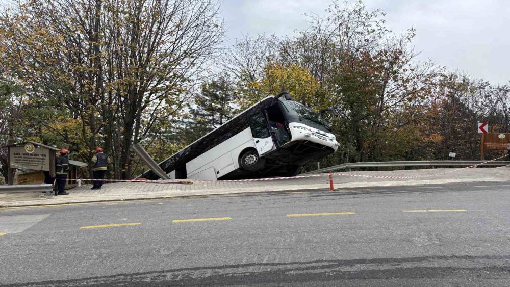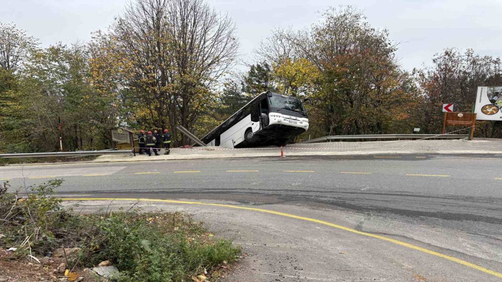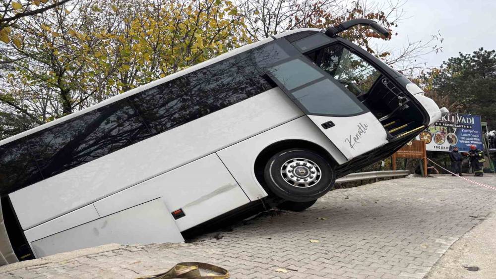 Kocaeli’nin Kartepe ilçesinde park halindeyken hareket eden tur otobüsü bariyeri aşıp şarampole düştü. Facianın eşiğinden dönüldüğü kazada yaralanan olmadı.