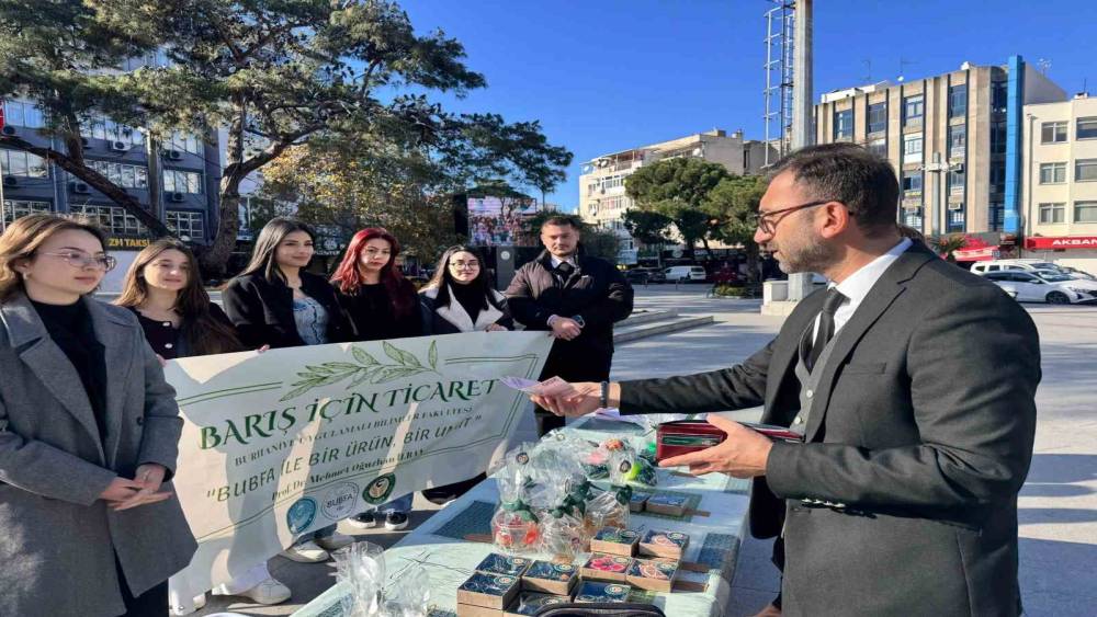 Balıkesir Üniversitesi Burhaniye Uygulamalı Bilimler Fakültesi, fakülte sosyal sorumluluk çalışmaları kapsamında Filistinli çocukların eğitimine yönelik anlamlı bir projeye imza attı. Fakülte öğrencileri tarafından yürütülen "BUBFA ile Barış İçin Ticaret" projesi, Burhaniye Cumhuriyet Meydanı’nda kurulan satış standında gerçekleştirildi.