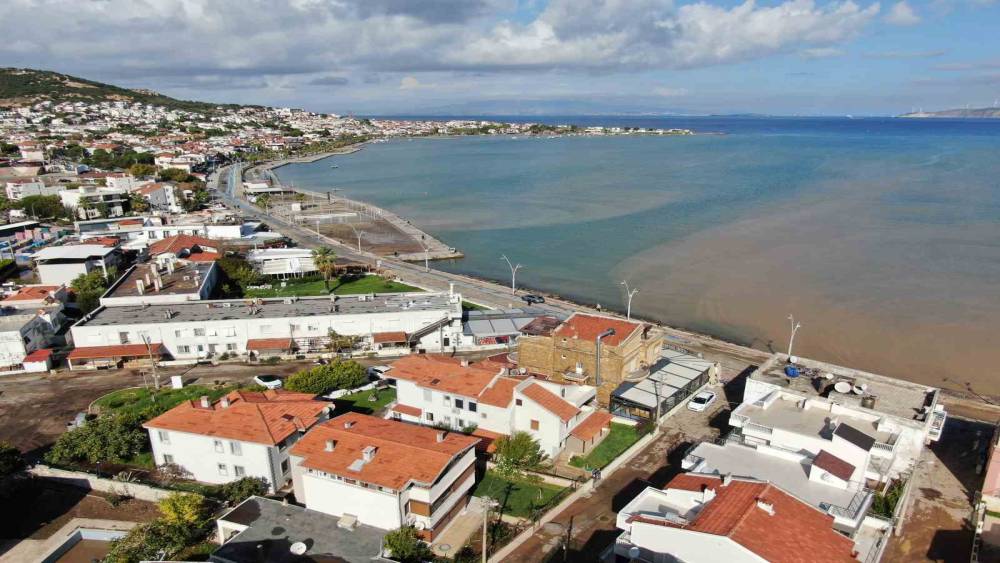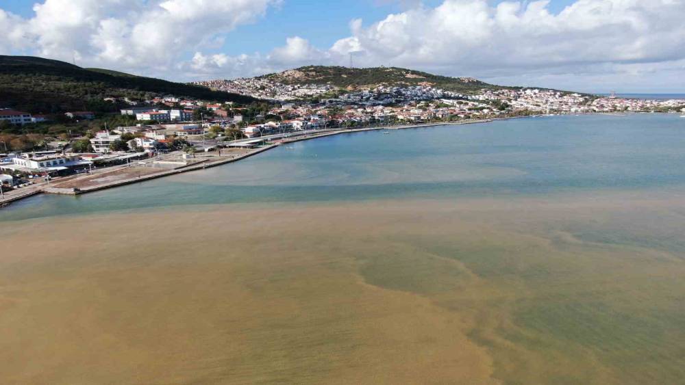 Foça’da sel suları denizin rengini değiştirdi