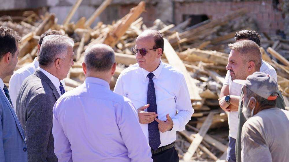 Yeşilyurt Belediye Başkanı Prof. Dr. İlhan Geçit, beraberinde Belediye Başkan Yardımcısı Hasan Atay, Mehmet Cüreoğlu ve mühendislerle birlikte geçen sene yaşanan büyük depremlerde ağır hasar alıp yıkılan tarihi tescilli yapıların olduğu bölgede detaylı bir incelemede bulundu.