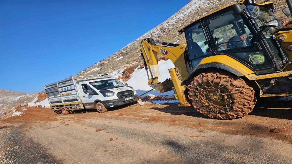 İlçeye bağlı Rüzgarlı köyü mevkiinde hayvanları için yem almaya giden göçerlerin kamyoneti, yoğun kar yağışı ve buzlanma nedeniyle yolda saplanıp kaldı. Kendi imkanlarıyla araçlarını kurtaramayan göçerler, durumu Rüzgarlı köy muhtarı Mehmet Emin Biçen’e bildirdi. Biçen’in vakit kaybetmeden İlçe Özel İdare ekiplerine haber vermesi üzerine bölgeye hızla iş makineleri sevk edildi. Kısa sürede olay yerine ulaşan ekipler, karla kaplı yolu temizleyerek mahsur kalan kamyoneti saplandığı yerden kurtardı. Donma tehlikesine ve mağduriyete karşı zamanında müdahale eden ekipler, yolun güvenliğini sağladıktan sonra bölgeden ayrıldı.