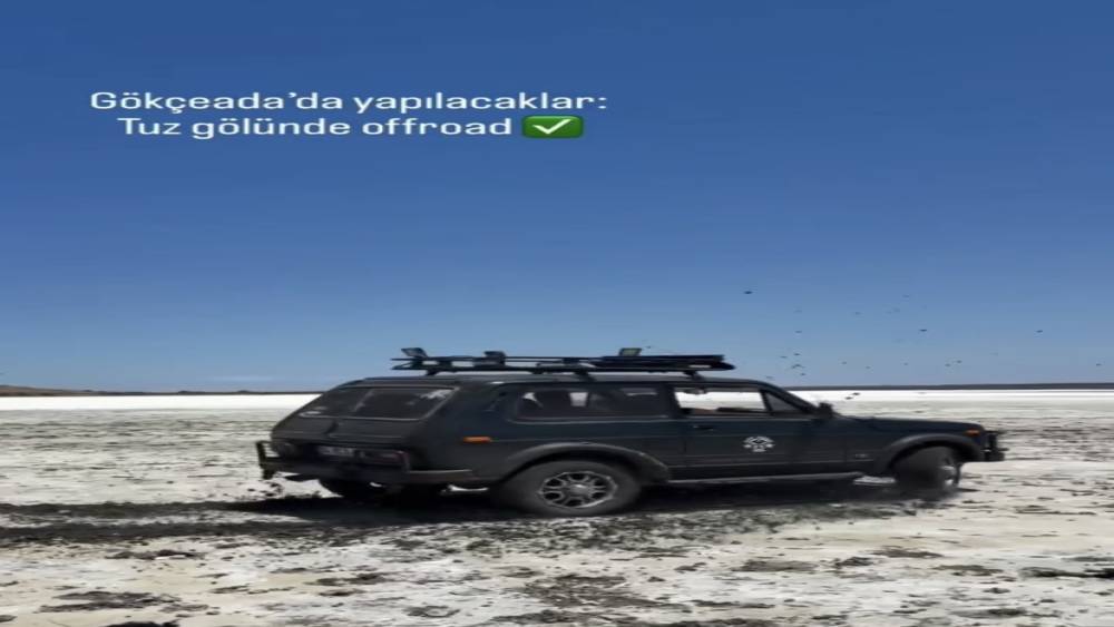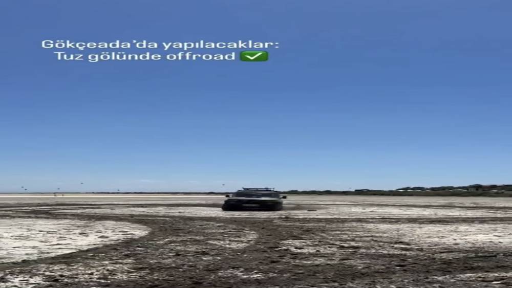 Türkiye’nin önemli doğa ve deniz turizmi merkezlerinden Çanakkale’nin Kuzey Ege Denizi’ndeki dünyanın ilk ‘Cittaslow (sakin şehir) adası’ unvanına sahip, Türkiye’nin en büyük adası olan Gökçeada ilçesindeki Tuz Gölünde bir kişi arazi aracıyla drift yaptı. Sosyal medyada paylaşılan drift görüntüleri büyük tepki çekerken, jandarma tarafından araç trafikten men edildi.