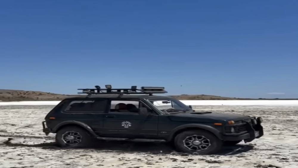 Gökçeada’da tuz gölünde arazi aracıyla drift yaptı