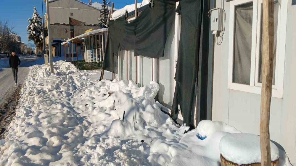 İlçe merkezinde kar kalınlığının artmasıyla birlikte, özellikle iş yerlerinin önünde bulunan çadır tipi gölgelikler ve tenteler karın ağırlığına dayanamayarak çöktü. Gece saatlerinde şiddetini artıran yağış sonrası, ilçedeki birçok noktada çadır gölgelik olarak tabir edilen yapılar kar yükünü taşıyamadı. Aniden çöken yapılar nedeniyle şans eseri yaralanan olmazken, gölgeliklerin altında bulunan eşyalarda ve araçlarda maddi hasar oluştu.