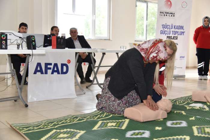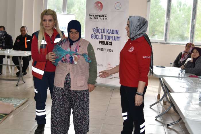 Manisa Kadın İçin Girişim Derneğinin yürüttüğü; Yunusemre Kaymakamlığı, Manisa Celal Bayar Üniversitesi Sağlık Bilimleri Fakültesi, Manisa İl Sağlık Müdürlüğü ve Manisa AFAD İl Müdürlüğü’nün proje ortağı olduğu ’Güçlü kadın güçlü toplum’ projesi temel ilk yardım ve afet bilinci eğitimleri devam ediyor. Projenin 4'üncü ve son eğitimi Yunusemre ilçesine bağlı kırsal Maldan Mahallesinde gerçekleştirildi.