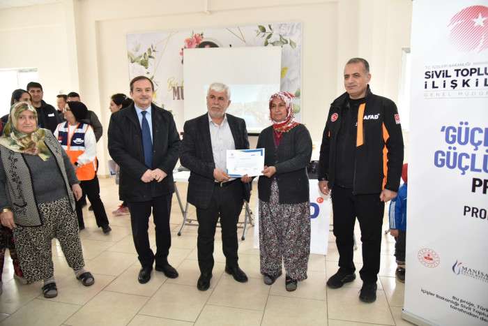 Manisa’da çalışmayan ve okumayan yaşları 20-40 arasında olan kadınlara yönelik hazırlanan ’Güçlü kadın güçlü toplum’ projesi Yunusemre ilçesine bağlı kırsal Maldan Mahallesinde tamamlandı. Projeye ilişkin ETV mikrofonlarına konuşan Manisa İl Sağlık Müdürü Dr. Erol Karaca, “Kadınlarımızı temel yardım eğitimi ve afet bilinci ile donatmak istiyoruz.” ifadesinde bulundu.