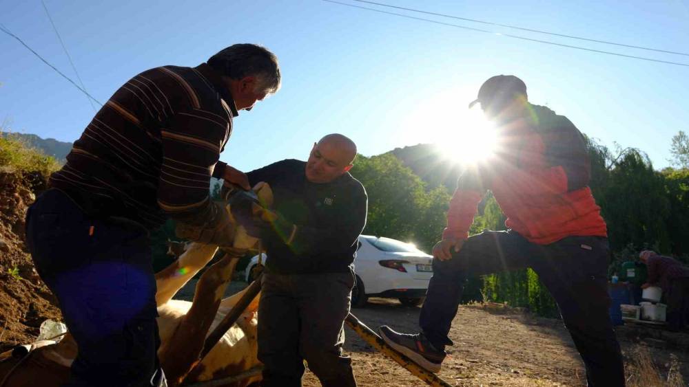 Beldeye bağlı Türkmenli Mahallesi’nde yaz aylarının gelmesiyle birlikte tatlı bir telaş yaşanıyor. Bölgenin zorlu coğrafyasında büyükbaş hayvancılıkla geçimini sağlayan üreticiler, hayvanlarının sağlığını korumak ve verimini en üst düzeye çıkarmak için yüzlerce yıldır devam eden nal çakma geleneğini imece ruhuyla sürdürüyor.