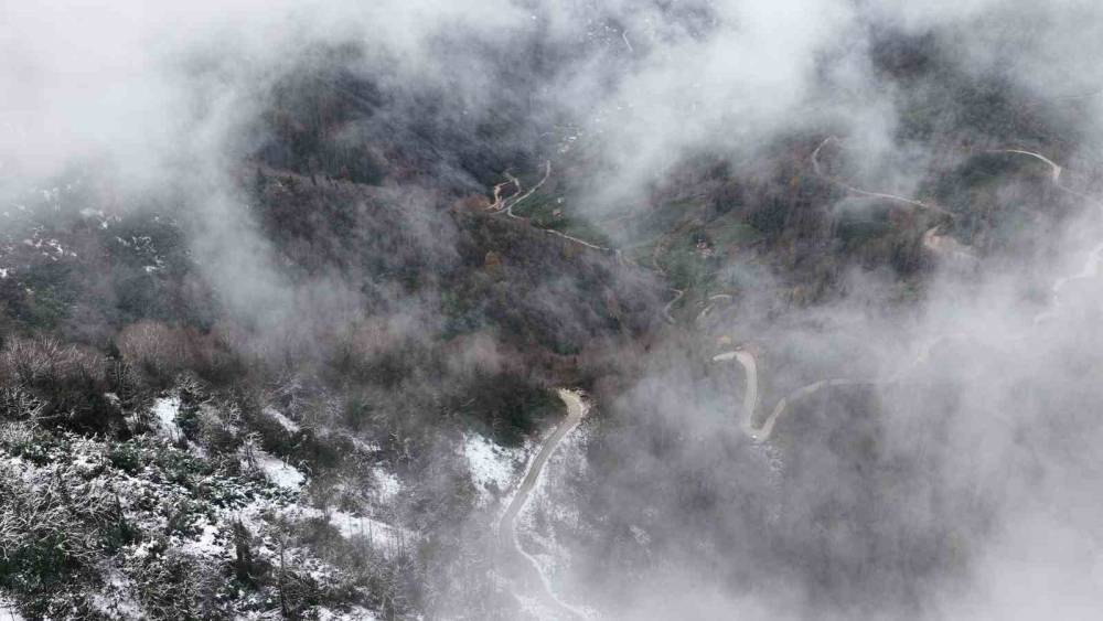 Doğu Karadeniz’de kar yağışı etkisini göstermeyi sürdürüyor. Yüksek kesimlerin tamamen karla kaplandığı Rize’de yeşilin üzerine serili beyaz örtü kartpostallık görüntüler ortaya çıkardı. Rize’nin Güneysu ilçesine bağlı Handüzü Yaylası da kar yağışından nasibini aldı. Şehir merkezine yakınlığı ile dikkat çeken yayla beyaza büründü. 1 metreye yaklaşan kar kalınlığının bulunduğu bin 800 metre yükseklikteki yaylada yaylacılar ve turistler karın tadını çıkardı. Ulaşımın aksamaması için ise Karayolları ve Rize İl Özel İdaresi tarafından bölgede yol temizleme çalışması da başlatıldı. Beyaz örtüyle süslü yaylalar havadan görüntülendi.