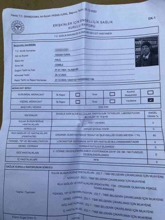 Kendi ihtiyaçlarını karşılayamayacak kadar engeli olduğunu kaydeden ailesi Hasan Vural'ı görenlerin en yakın polis veya jandarma merkezine haber vermesini istedi. (İHA)