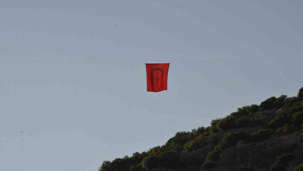 Adıyaman’ın Besni ilçesine bağlı Oyratlı Köyü’nde yıllar önce başlayan iki dağ arasına Türk bayrağı asılarak asker uğurlama geleneği bu yıl da devam ediyor.