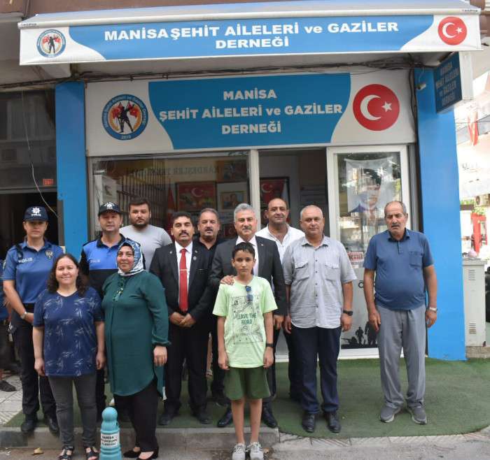 Başkan Adnan Kaya, "Derneğimiz şehit ailelerin ve gazilerin evi. Bizler buraya her gün geliyoruz ve burada toplanıyoruz. Bir şehit yakınımızın ve gazimizin sorunu olursa yardımcı oluyoruz. Şehitlerimiz ve hayatını kaybeden gazilerimiz için bizler burada Mevlid-i Şerif okutuyoruz dualar ediyoruz. Sizleri derneğimizden görmekten mutluluk duyduk" dedi. Manisa İl Emniyet Müdürü Fahri Aktaş ise Şehit Aileleri ve Gaziler ile bir arada olmaktan mutlu olduğunu dile getirdi ayrıca Manisa Şehit Aileleri ve Gaziler Derneği Başkanı Adnan Kaya ve yönetim kurulu üyelerine teşekkür etti. Ziyaret hatıra fotoğrafı çekilmesi ile sona erdi. Haber Merkezi