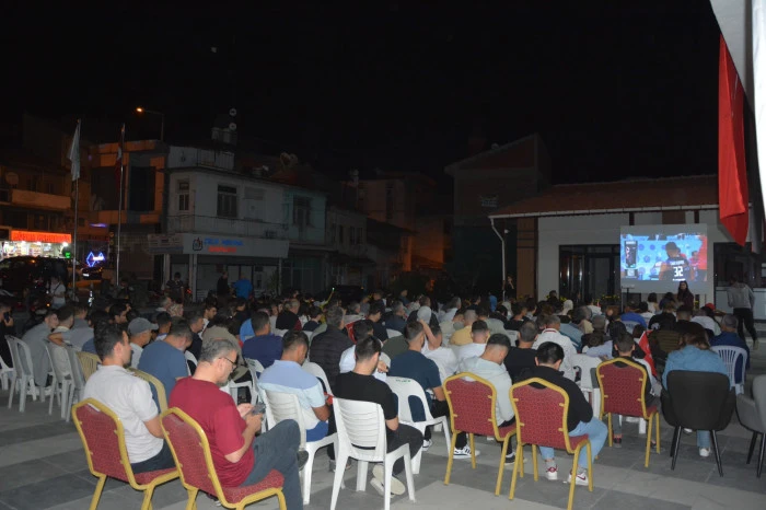Vatandaşlar maç öncesi alana aileleri ile birlikte akın ederek kurulan dev ekrandan final maçı heyecanı yaşadı. Demirci Belediyesi tarafından vatandaşlara karşılaşma öncesi bayrak hediye edildi. (İHA)