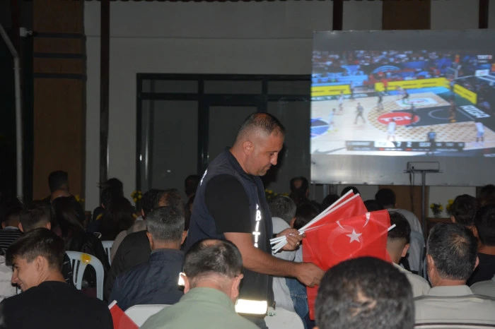 Manisa'nın Demirci ilçesindeki yüzlerce vatandaş EuroBasket 2025 final maçını belediye hizmet binası önüne kurulan dev ekrandan izledi.