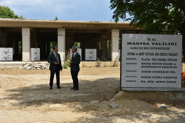 Manisa’nın Salihli ilçesinde Ticaret ve Sanayi İlköğretim Okulu Bahçesine ve Fahriye Hanım İlkokulu bahçesine hayırseverler tarafından anaokulu yapılıyor. İnşaatı devam eden anaokullarında Kaymakam Ali Güldoğan incelemelerde bulundu.