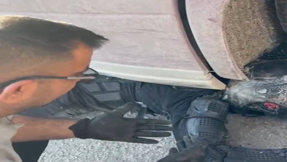 Adana’da tırın altında sıkışan motosikletin sürücüsü, kaskı ve koruyucu kıyafetleri sayesinde kazayı hafif sıyrıklarla atlattı.