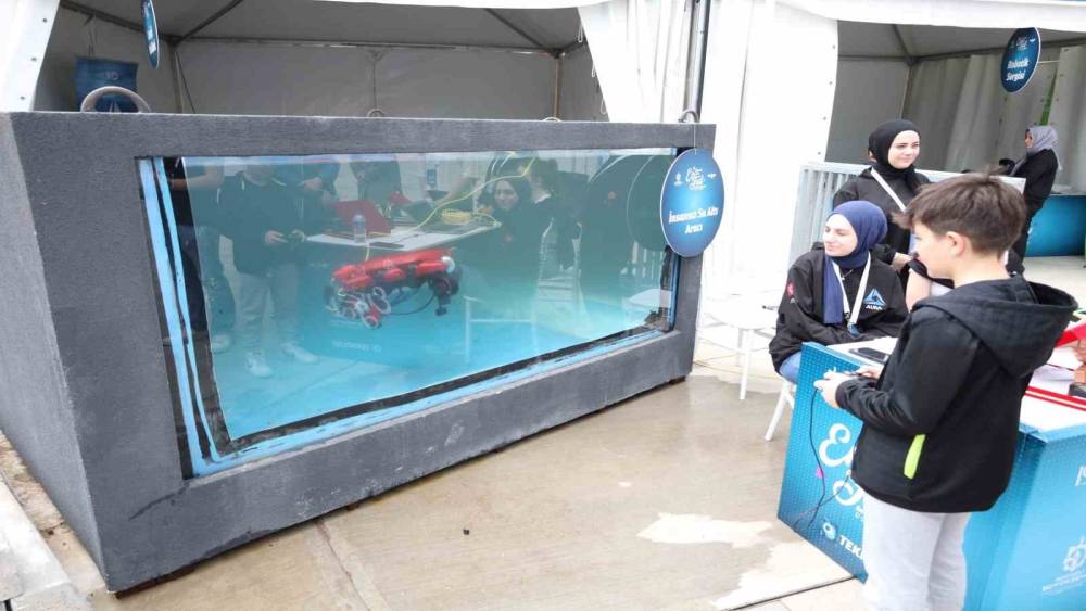 İzmit Milli İrade Meydanı’nda gerçekleşen EnFest’te, 2024 Teknofest’te ödül alan "Kılavuz Aura Auv İnsansız Su Altı Sistemleri Aracı" sergileniyor.