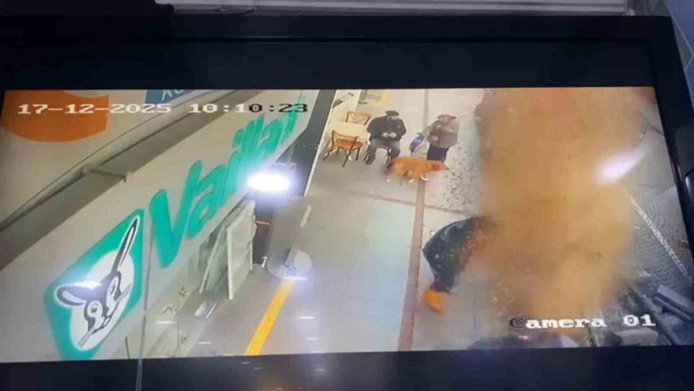 Öte yandan bölgedeki bir işletmede patlamadan kaynaklı fışkıran sudan nasibini aldı. İşletmenin camı balçık ile bulanırken içerisine su girdi. O anlar ise anbean güvenlik kamerasına yansıdı.