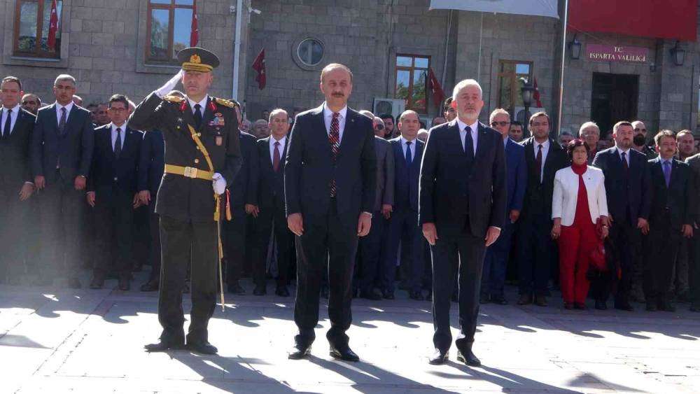Isparta’da Türkiye Cumhuriyetinin kuruluşunun 101’inci yılı ve 29 Ekim Cumhuriyet Bayramı kutlamaları, çelenk sunumu ile başladı.