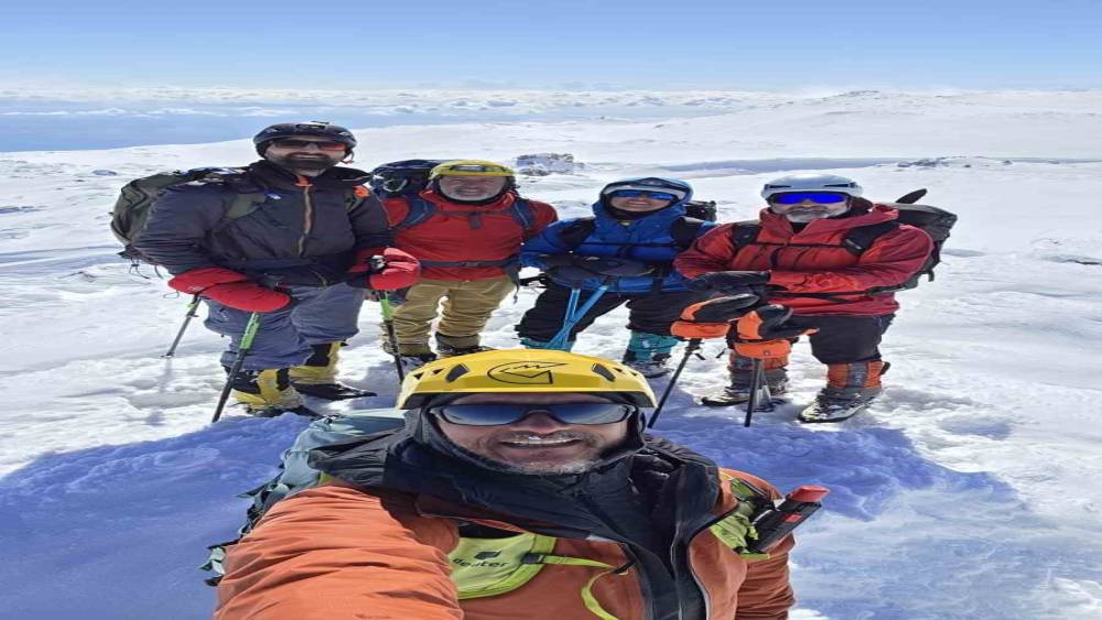 Yaklaşık 8 saat süren zirve yürüyüşünün ardından ekip, 4 bin 58 metre rakımlı zirveye ulaşarak hatıra fotoğrafı çektirdi. Zirvede kısa bir kutlama yapan sporcular, hava şartlarını göz önünde bulundurarak kontrollü şekilde inişe geçti.