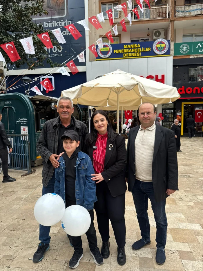 İYİ Parti Şehzadeler İlçe Başkanlığı, 23 Nisan Ulusal Egemenlik ve Çocuk Bayramı kapsamında şehir merkezinde düzenlenen etkinlikle vatandaşlarla bir araya geldi. Çocuklara bayrak ve balonların dağıtıldığı programda, İlçe Başkanı Gözde Aytaç, çocukların Türkiye'nin yarınları ve en büyük teminatı olduğunu vurguladı.