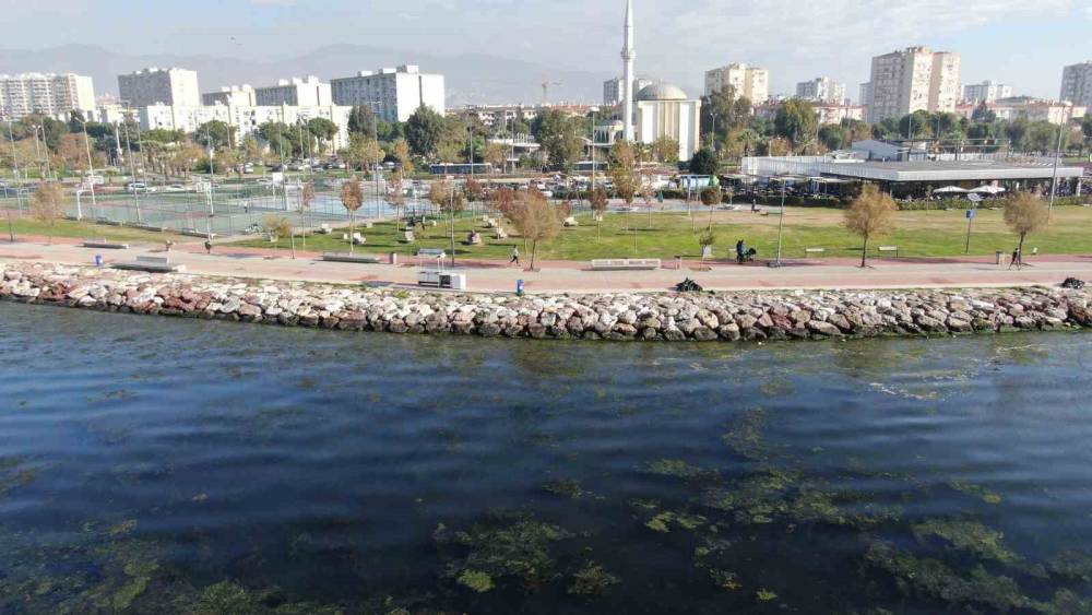 İzmir Körfezi’nin Bostanlı kıyılarında sabah saatlerinden itibaren deniz yüzeyinde yoğunlaşan yeşil görüntü dikkat çekti. Sahil bandının kıyı kesimlerinde biriken ve deniz marulu olarak adlandırılan su yosunları, denizin rengini değiştirirken kıyıya vuran ve su yüzeyini kaplayan yeşil tabaka, sahil boyunca geniş bir alanda gözlemlendi. Özellikle dalga hareketlerinin az olduğu sığ bölgelerde yoğunluğun arttığı görüldü. Ayrıca havanın güzel olmasını fırsat bilerek Bostanlı sahiline yürüyüş ve spor yapmaya gelen vatandaşlar, denizdeki renk değişimini fark etti. Öte yandan deniz yüzeyindeki tabakanın kıyı boyunca belirli aralıklarla devam ettiği görüldü.