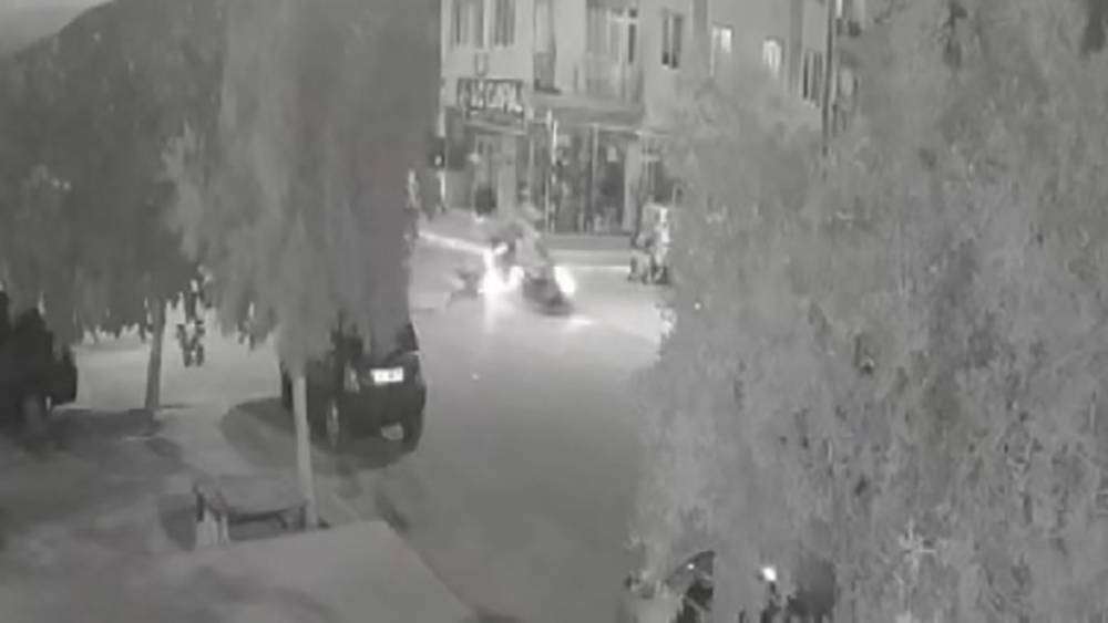 Öte yandan meydana gelen kaza, çevredeki bir güvenlik kamerası tarafından kaydedildi. Görüntüde, iki motosikletin yol ağzında karşılaştığı, sertçe çarpıştığı, motosiklet ve sürücülerin yola savrulduğu anlar yer aldı.